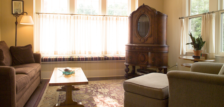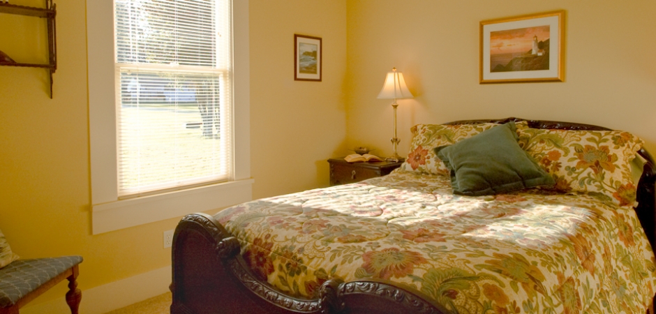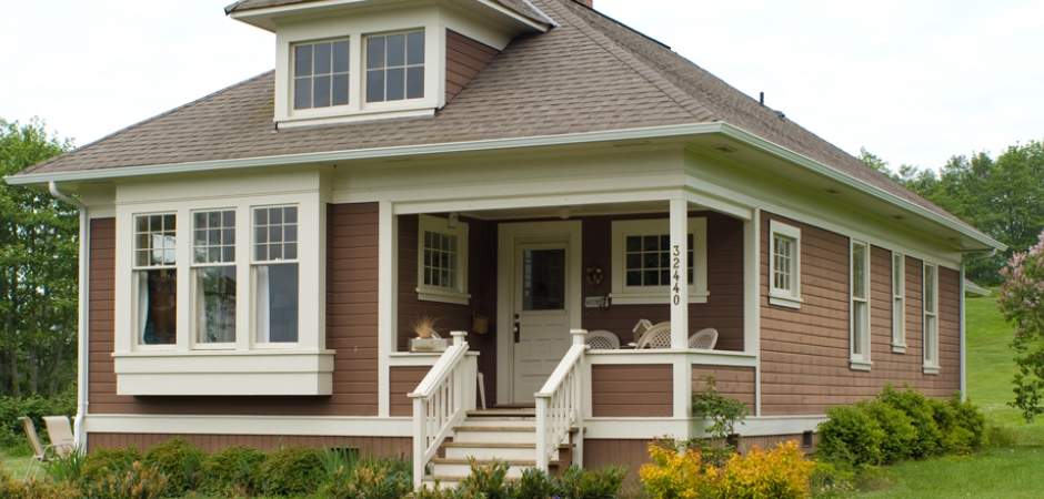 This idyllic and beautifully decorated vacation rental cottage (the brown house) features a three bedrooms, two baths, and can sleep up to eight people. It includes a fully equipped kitchen, dining room, fireplace and living room. All common areas provide beautiful views of the water.